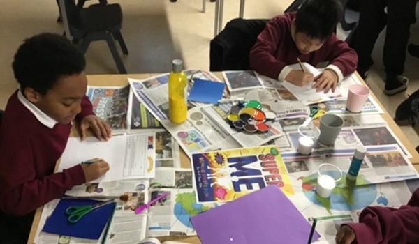 KS2 Art ambassadors organised a lunchtime art club for KS1 children to participate in a competition where the brief entailed designing a superhero.