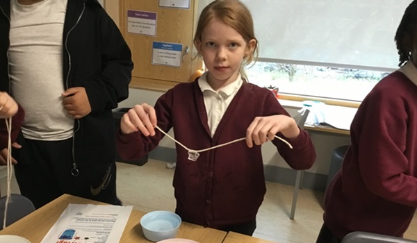 Today in science club we have been exploring how to lift ice on a string. How we did this is that you fill a bowl, a cup or a plate with water and then place an ice cube in