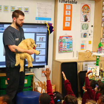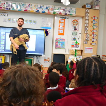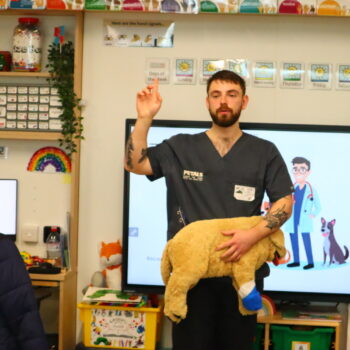 You can find out more about Billy and his Vetinary Practice by visiting his website. Please go to https://www.petals.vet/ for more information. We took some pictures of Billy’s classroom visits, which can be seen in the gallery below. Please click on the thumbnails below for a larger view. We also recorded the assembly this morning, which will be available to watch later this evening once edited. Please check back later to hear from both Billy and local artist Rod Kitson, who also spoke to the children today.