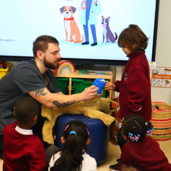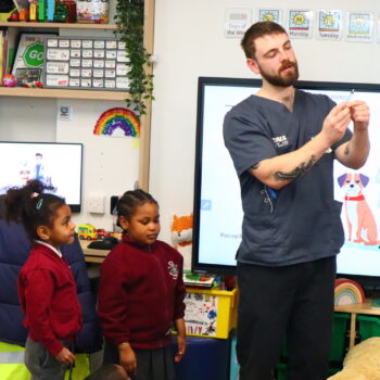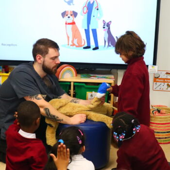 After the assembly, Billy spent some time in both Whale Class and with our Reception children where he demonstrated some of the activities that take place on a daily basis at his practice.
