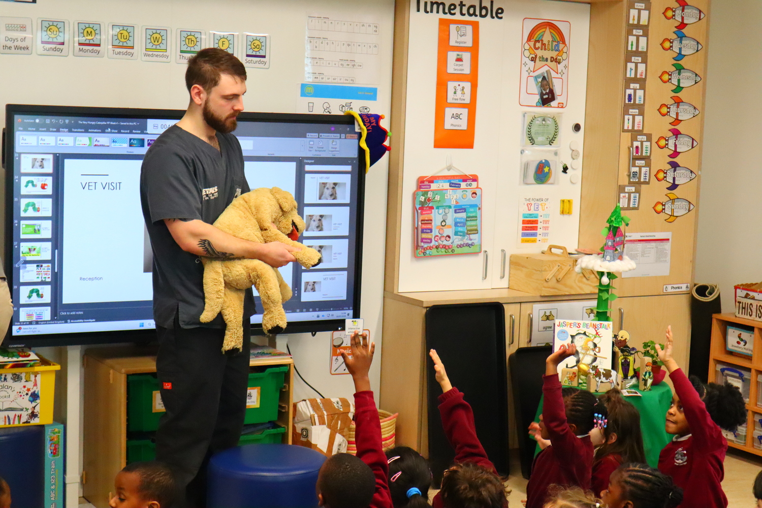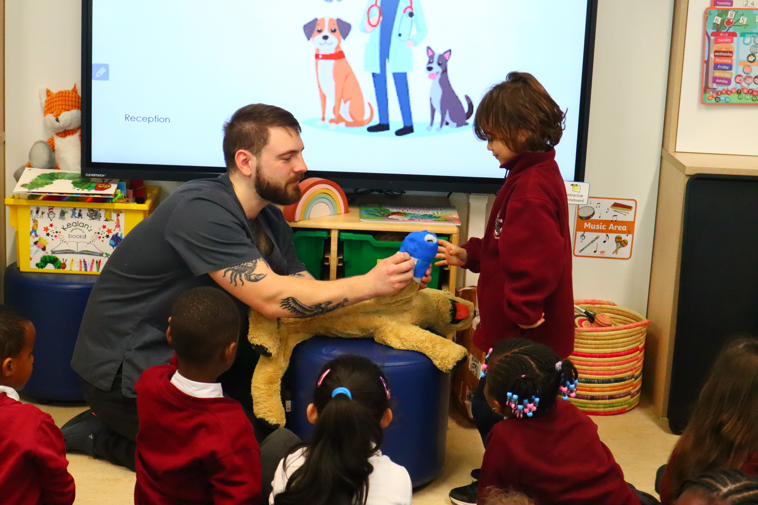 After the assembly, Billy spent some time in both Whale Class and with our Reception children where he demonstrated some of the activities that take place on a daily basis at his practice.