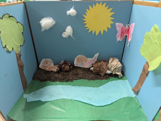 We planned our designs, selected materials, and carefully assembled each element to bring our ideas to life. By the end of the session, we had completed miniature scenes that showcased our understanding of different habitats and demonstrated creativity and independence.