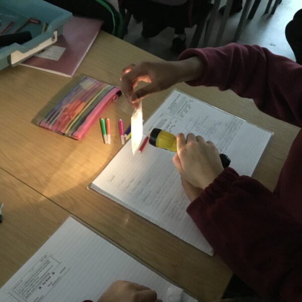 They also used their understanding that light travels in straight lines to explain why shadows always match the shape of the object that casts them. Because light cannot bend around an object, it creates a shadow with the same outline wherever the light is blocked. Through practical activities and discussion, Year 6 deepened both their scientific knowledge and their enquiry skills.